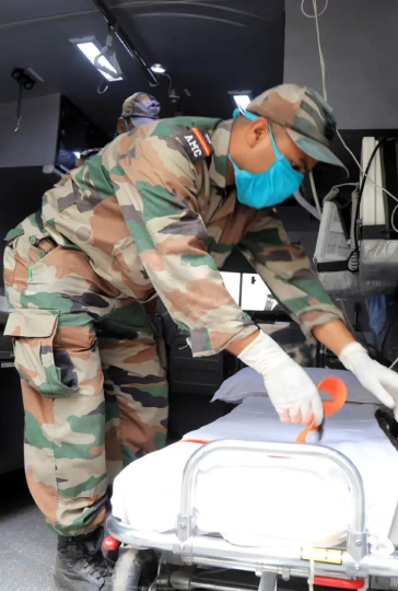Advanced mobile hospital system with modules for Operating Room, ICU, Emergency Room, Ward, Sterilization, and Storage designed for defence forces.